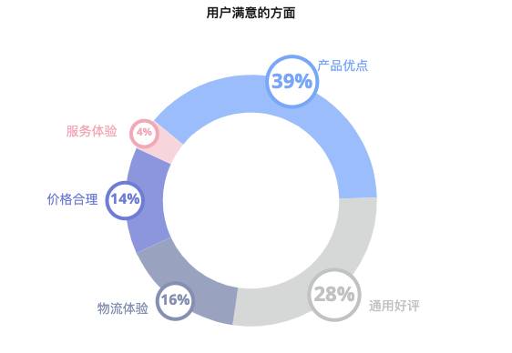 从具体数据结果来看,阿胶品牌用户提及的满意点位中,产品优点提及率最高(39%);其次是物流体验不错(16%)和价格合理(14%),而服务体验满意提及率仅为4%。