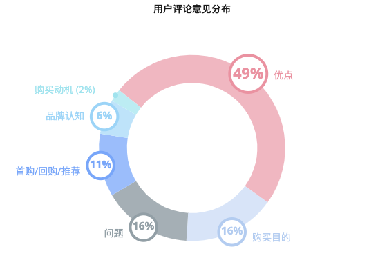 总体而言,阿胶品牌用户对“优点”分类下内容的主动提及率达到49%,满意度较高;而“问题”分类下内容的主动提及率也占比16%,说明用户不满意的方面也较多,要引起额外注意。