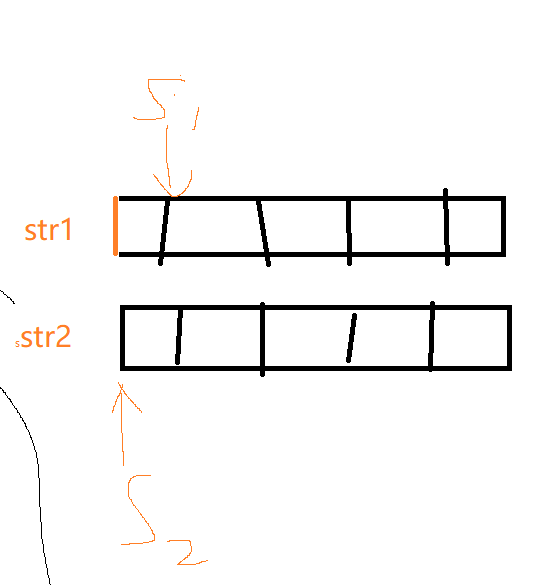 那这样就尽量不要动str1,str2的地址,需要多的指针变量来记录重要位置,比如起始位置,现在比较的位置,于是乎我给了多个变量,分别是 str1,str2,cur,s1,s2,