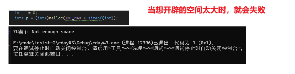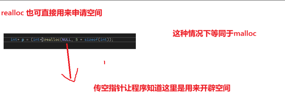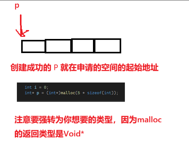 • 如果开辟成功,则返回⼀个指向开辟好空间的指针。