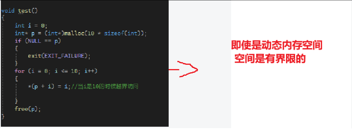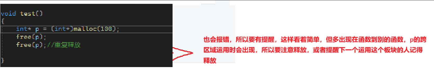 切记:动态开辟的空间⼀定要释放,并且正确释放。