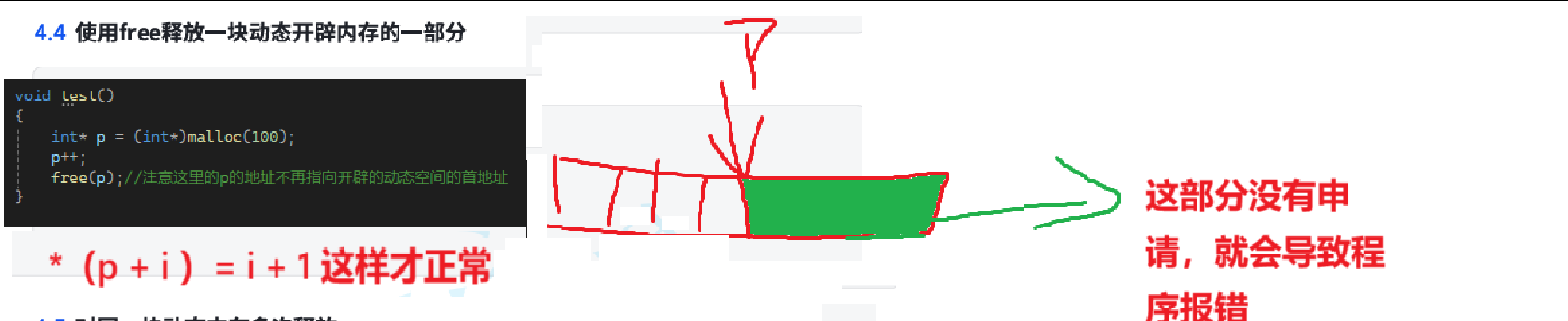 4.4 使⽤free释放⼀块动态开辟内存的⼀部分