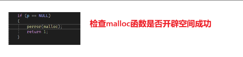 • 如果开辟失败,则返回⼀个 • NULL 指针,因此malloc的返回值⼀定要做检查