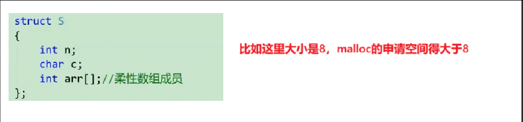 • sizeof返回的这种结构⼤⼩不包括柔性数组的内存。