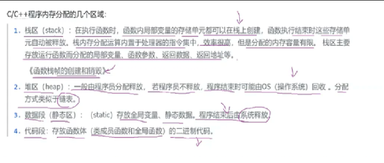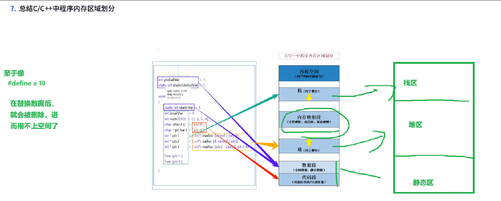 3. 数据段(静态区):(static)存放全局变量、静态数据。程序结束后由系统释放。