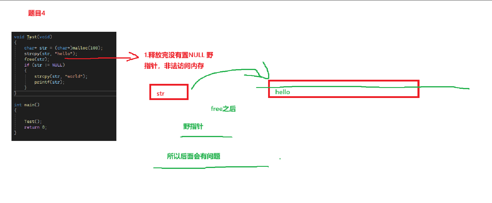 这里乍一眼看好像没什么问题,有释放了空间,但有个最主要的问题,没有将str置为空,
