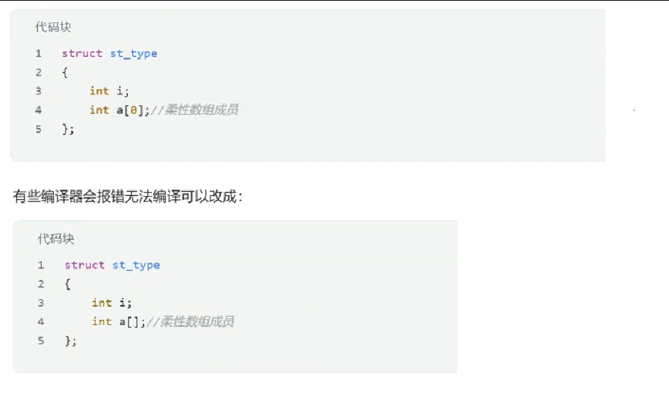 • 结构中的柔性数组成员前⾯必须⾄少⼀个其他成员。