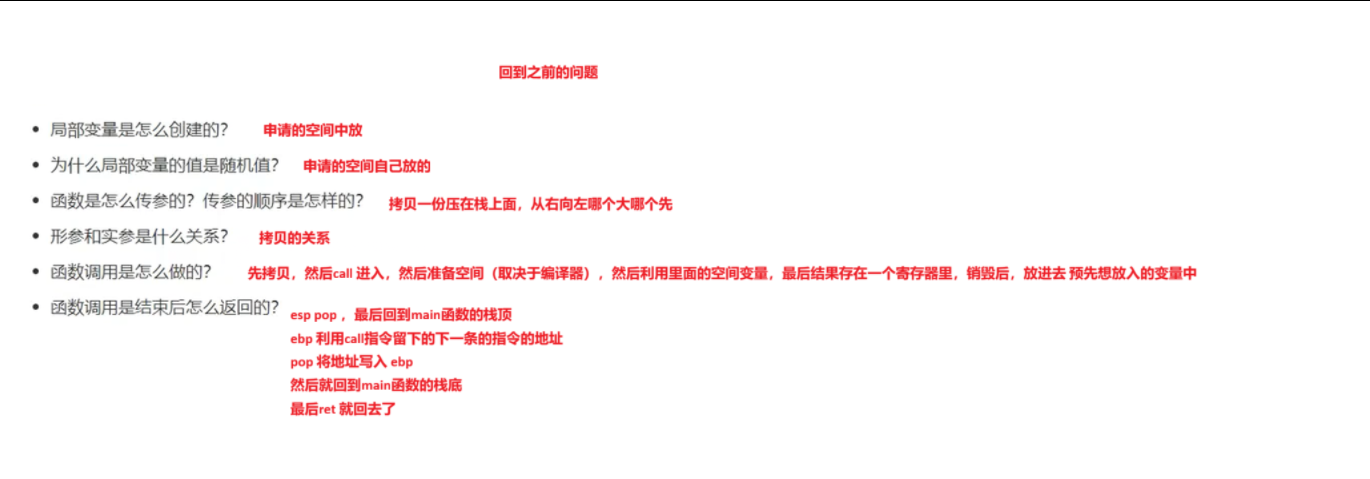 这些问题,当知道了函数的栈帧和销毁之后就可以解答了。