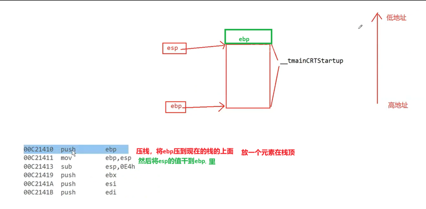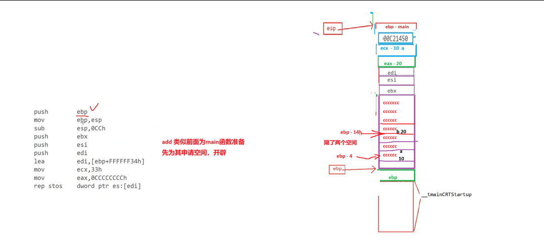 1. 首先在这个函数的上方 push 压栈 将ebp的值压在main函数的前置函数栈空间的上方
