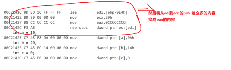 ecx 放入的内容,在创建栈帧空间时,被用作一种计数器,用ecx的值的次数,放入ecx次eax的值