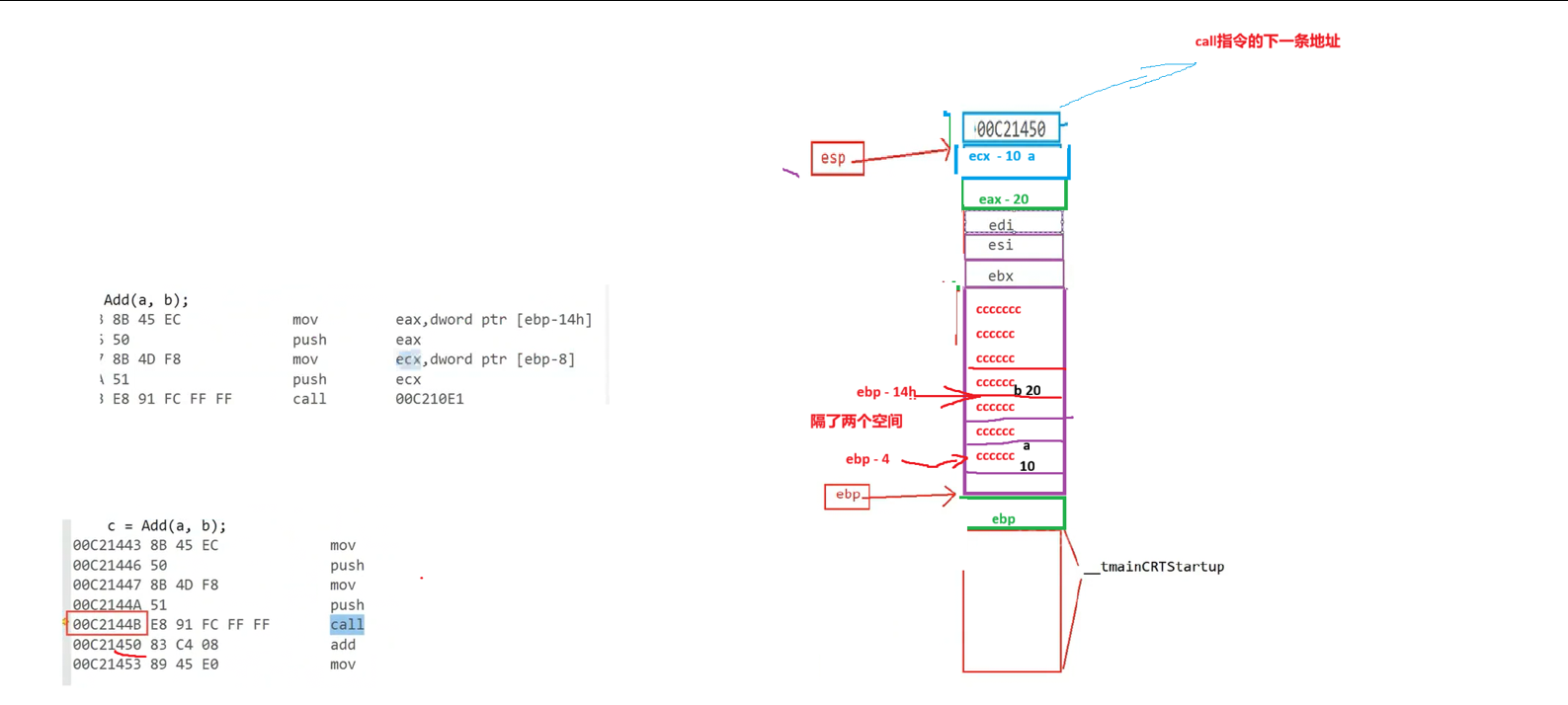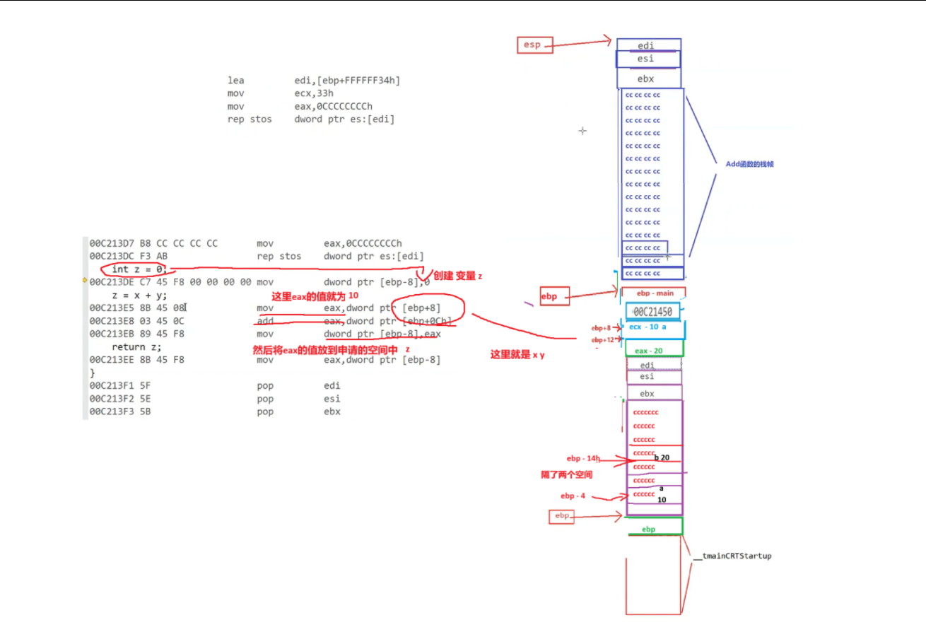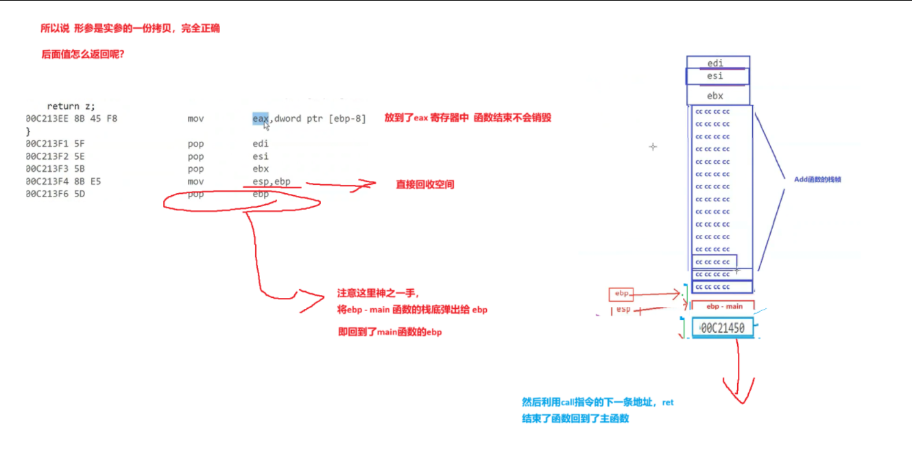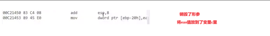 2.返回值 从 eax 中 放入之前创建的 变量 c 中,至此结束了整个函数