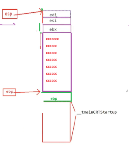 2.然后pop ebp ,ebp往下一格,到了ebp - main 的元素中,自然地回到了main函数的栈底