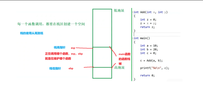 每一个函数的创建都需要在栈区创建一个空间,那么这个空间的创建与 ebp esp 有很大的关系