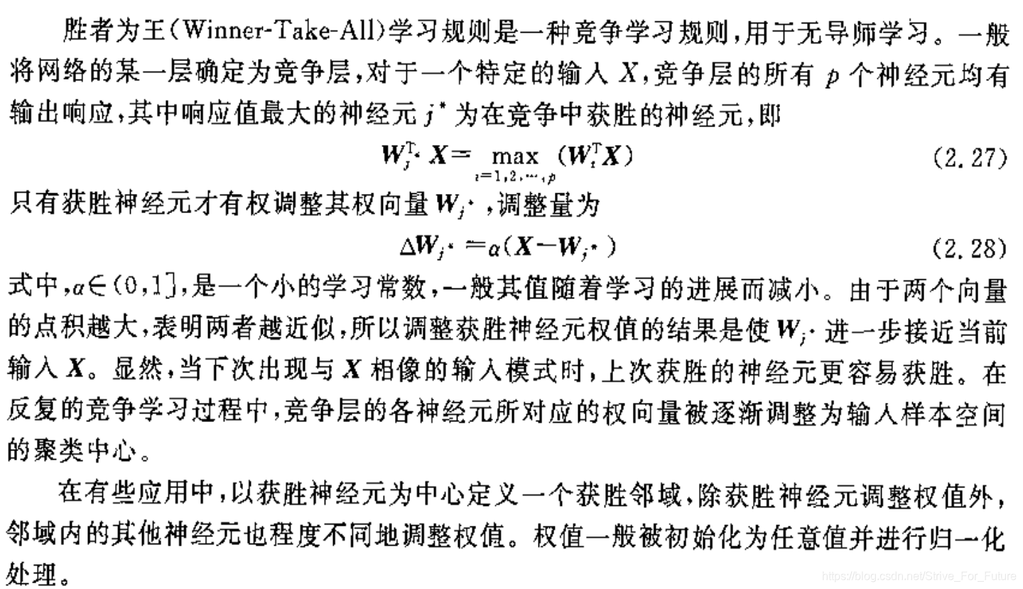 (1)胜者为王学习规则 WTA (winner-take-all)