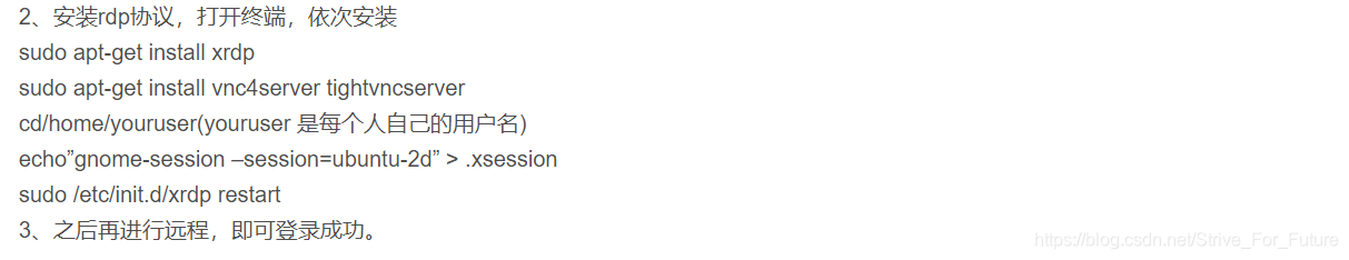 如文章 win10 远程桌面 ubuntu16 中介绍的,当sudo user 在ubuntu上搭建好xrdp之后,其他服务器上的成员,需要在自己的主文件夹下运行以下命令才能使用xrdp:
