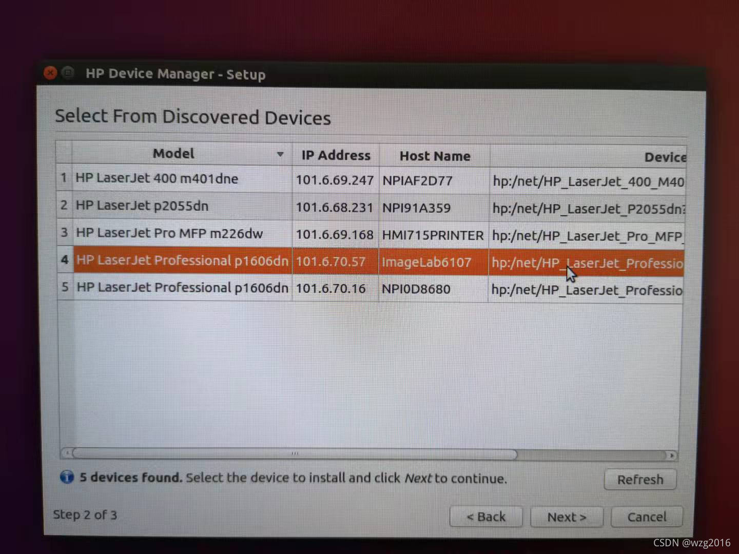 选择打印机,(如图所示,IP:101.6.70.57, Host Name: ImageLab6107)