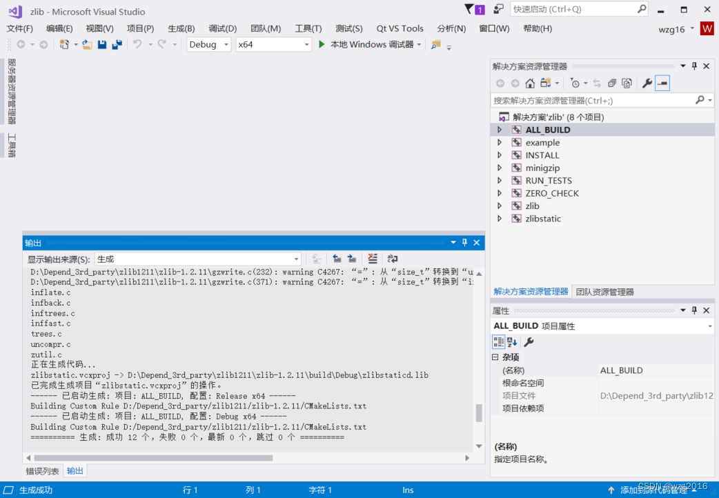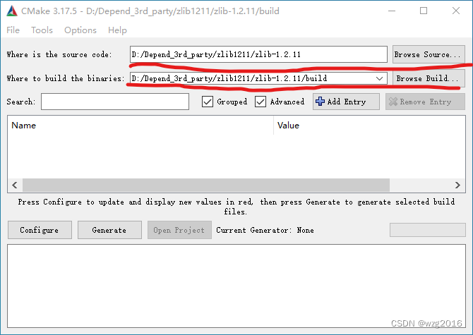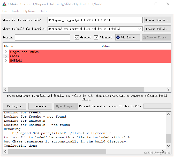 - CMAKE-->CMAKE_INSTALL_PREFIX 设置为:D:\Depend_3rd_party\zlib1211\install,