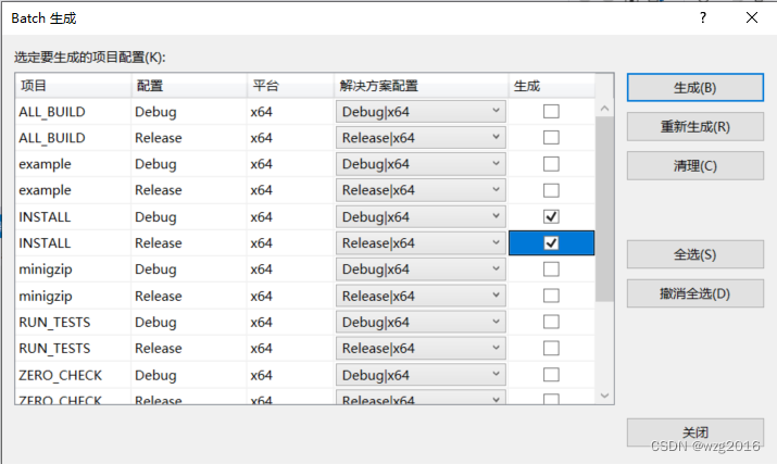 再次点击生成--》批生成,选择INSTALL的debug和release,生成