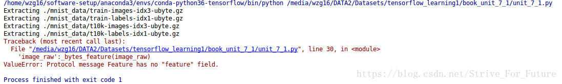 tf.train.Feature 应该是 tf.train.Features。 少写了一个s 。
