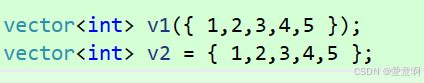v1的初始化是直接调用vector的构造进行初始化,而v2就是一种列表初始化,这种初始化就会调用vector的initializer_list ,来进行一种隐式类型转换,他中间会生成一个临时变量来进行初始化