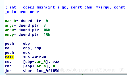 用ida打开文件Lab06-01.exe,发现了有main唯一调用的子程序call sub_401000