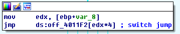 可以看到,在这个switch语句中,包含有5个case以及一个default。当计算的值大于4的时候,就会执行default的路径,计算的值小于等于4时,则会走a分支到e分支的其中一条路径。那我们挨个分析一下: