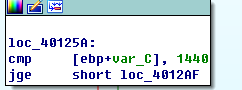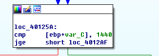 很明显,开头多了一个_sprintf,这个调用将Internet Explorer 7.50/pma%d输入到了lpszAgent,也就是user-agent,这样一来user-agent就不是固定的了,变成可变的了。eax也就是第一个参数,然后看函数调用发,现是var_c,分析 var_c的一系列操作,它就是赋值为0,然后跟1440比较, 每次循环后加一和1440比较,直至超出。