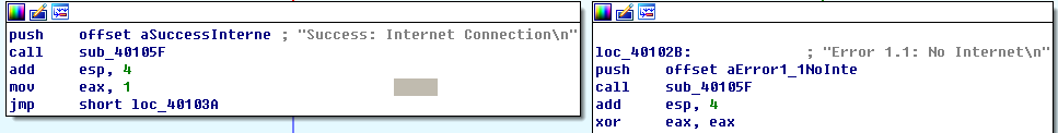 push offset aSuccessInterne ; "Success: Internet Connection\n"检测是否有可用网络,然后输出。