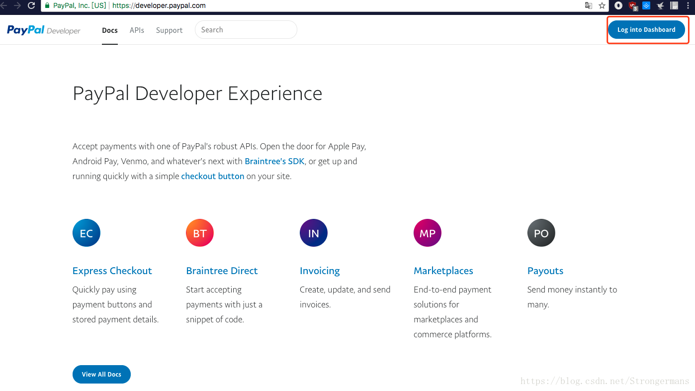 第二步:注册好之后就可以用这个账号去登陆PayPal的开发者平台了,网址是“https://developer.paypal.com”