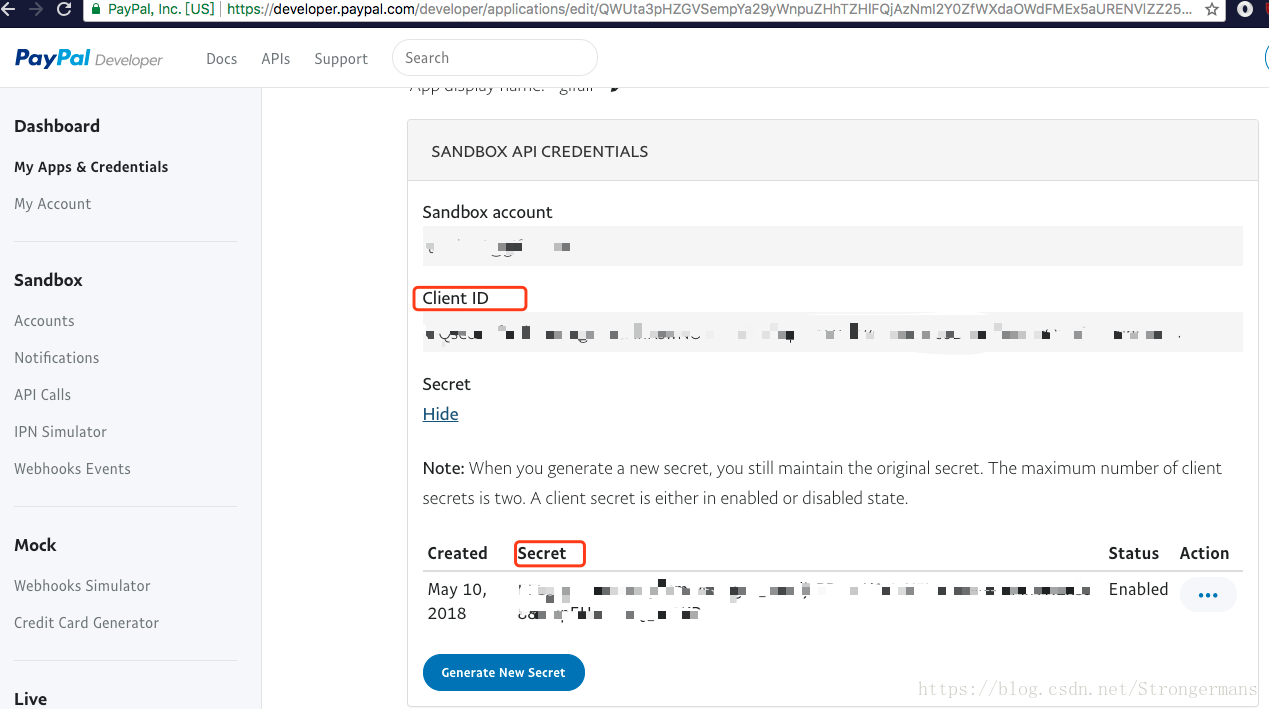 因为最近项目中要引用PayPal支付,琢磨了很久,查了很多资料,这里把生成sandbox的测试账号的client.app和client.secret步骤记录下来,方便以后使用;