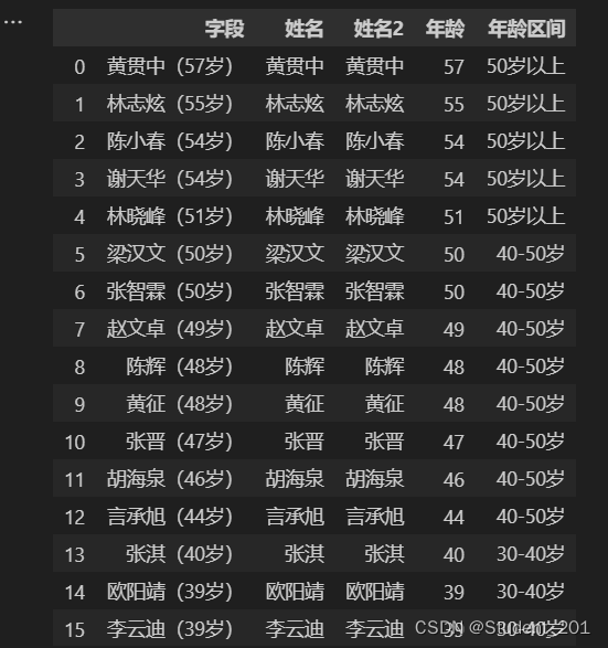data_age['姓名2'] = data_age['字段'].agg(lambda x:re.findall('[\u4e00-\u9fa5]+',x)[0])