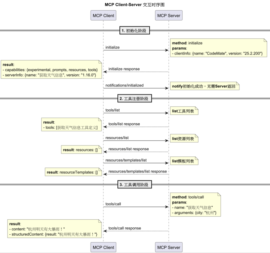 MCP Client发送:{"method":"initialize","params":{"protocolVersion":"2025-06-18","capabilities":{},"clientInfo":{"name":"CodeMate","version":"25.2.200"}},"jsonrpc":"2.0","id":0}