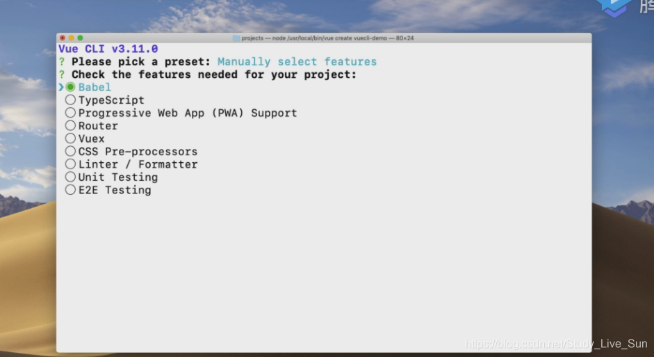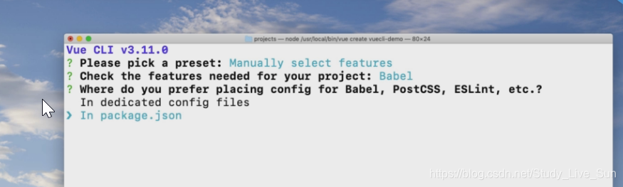 2、搭建项目,参考网址https://cli.vuejs.org/zh/guide/creating-a-project.html