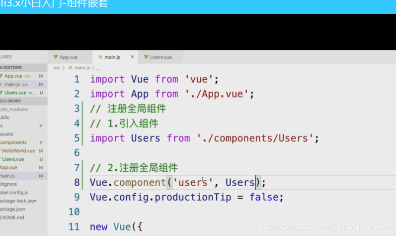 局部组件如下:调用过程1、引入组件 2、注册组件 3、使用组件