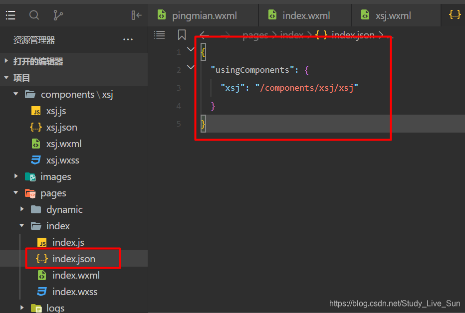 (2) 在页面调用位置的json文件中进行配置并且调用