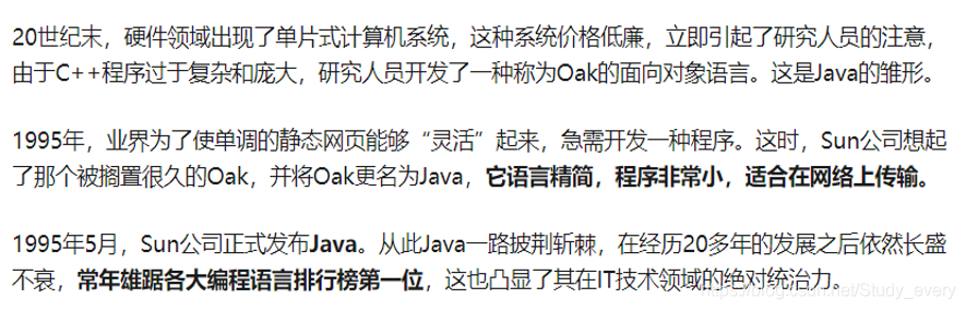 Sun公司研发人员并没有开发一种全新的语言,而是根据嵌入式软件的要求,对C++进行了改造,去除了留在C++的一些不太实用及影响安全的成分,并结合嵌入式系统的实时性要求,开发了一种称为Oak的面向对象语言。