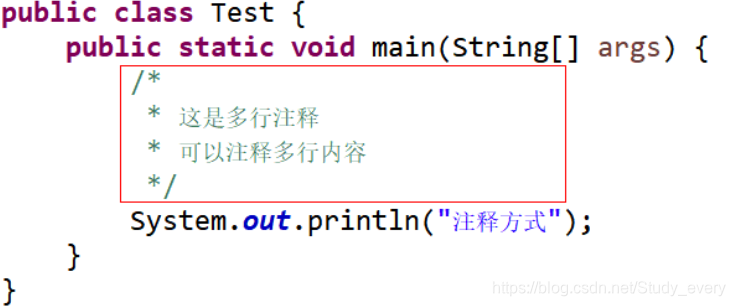 - 多行注释。多行注释的格式是使用/* 和 */将一段较长的注释括起来。
