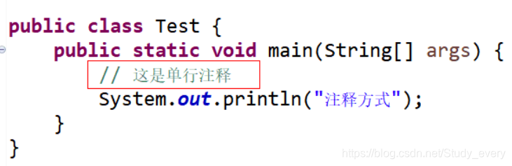 - 单行注释。单行注释的格式是使用//,从//开始至本行结尾的文字将作为注释文字。