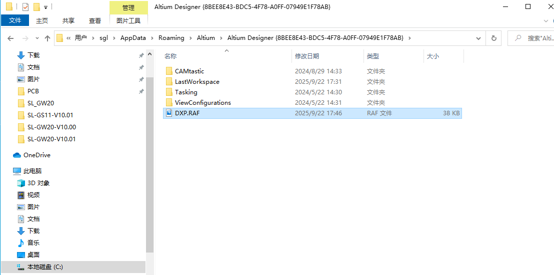 把类似于这个名字的文件夹Altium Designer {C2E00841-9B9B-4030-B13D-3ED8BAF3634A}下面的部分文件删除即可