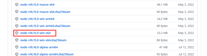 确认好版本,如下图,我的是 v3.4。名称为 node-v18.5.0-win-x64,那么我要在 v3.4 的目录下下载我们的对应文件 node-v18.5.0-win-x64