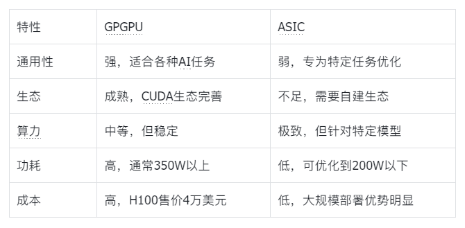 GPGPU就像是一把瑞士军刀,什么都能干,但什么都不精通;ASIC则像是手术刀,专门针对特定任务,效率极高但用途单一。