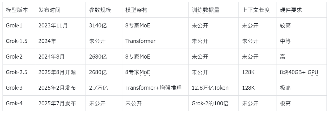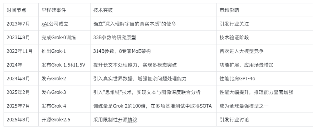 Grok系列模型的发展,折射出xAI从成立到崛起的轨迹: