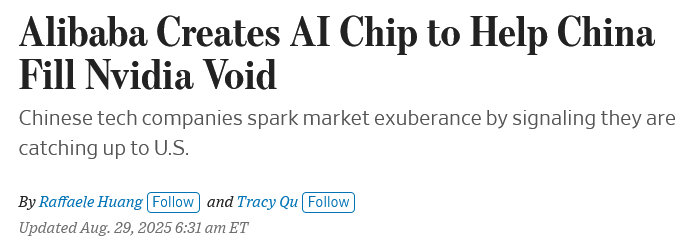 由于半导体技术的出口管制,阿里这样的公司,芯片必须在国内生产。据报道,为阿里代工的很可能就是中芯国际(SMIC),它也是华为昇腾系列NPU的制造商。一个完整的国产化链条,正在慢慢形成。
