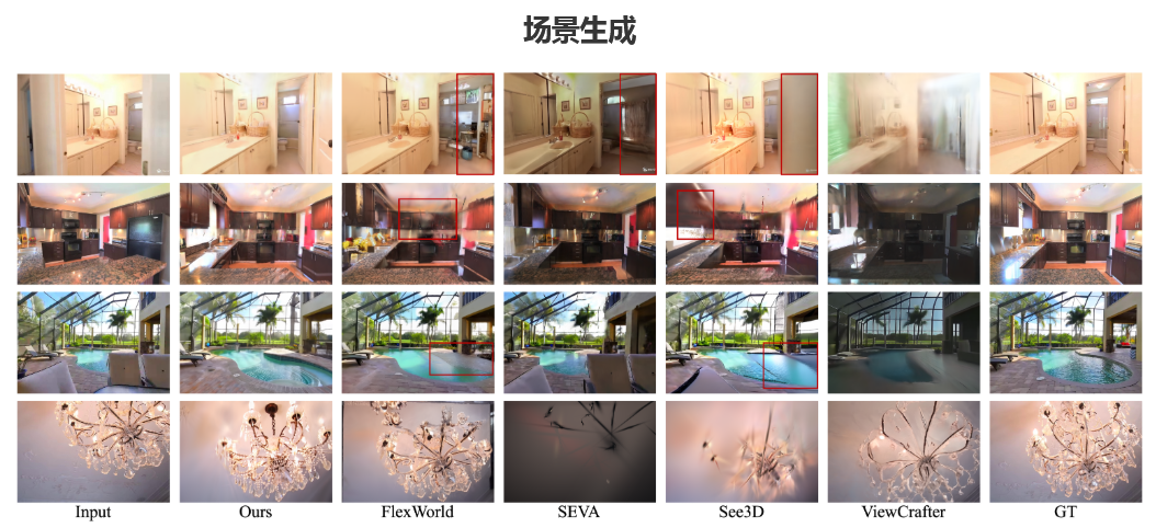 为了应对越来越大的场景,这个“勘探队”还学会了“点云剔除”技术,聪明地管理和优化海量的点云数据,大大提升了计算效率。更妙的是,它采用了一种自回归的推理方式,简单说就是“边走边看边记”。新生成的视频帧会实时更新那个“世界缓存”,形成一个闭环系统。这样一来,无论你的相机轨迹多么风骚,它都能保持几何上的一致性,不仅把漫游范围拓宽了,还能反过来给混元世界模型1.0补充新的视角内容,让整体生成质量更上一层楼。再加上一个叫“上下文感知的一致性技术”来保证视频采样丝滑流畅,最终给你的就是电影级的沉浸式体验。