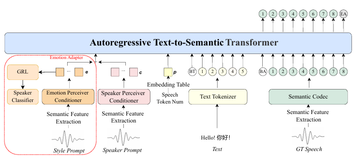 T2S模块,是整个系统的大脑和指挥中心。它负责把输入的文字转换成一种叫“语义token”的中间代码。但它又不是一个普通的自回归大语言模型,B站的工程师给它加了两个独门“插件”:时长控制和情感控制。