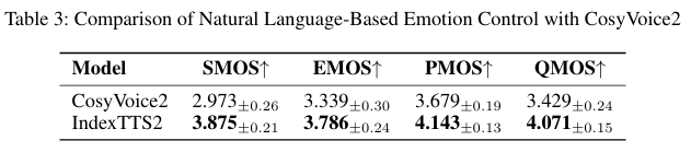 表3:基于自然语言的情绪控制与CosyVoice2的比较