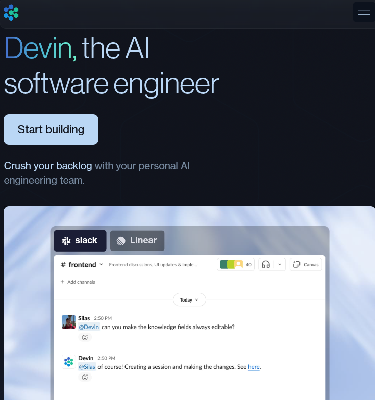 聊到产品,就必须提他们的核心武器Devin——官方盖章的“全球首个AI软件工程师”。