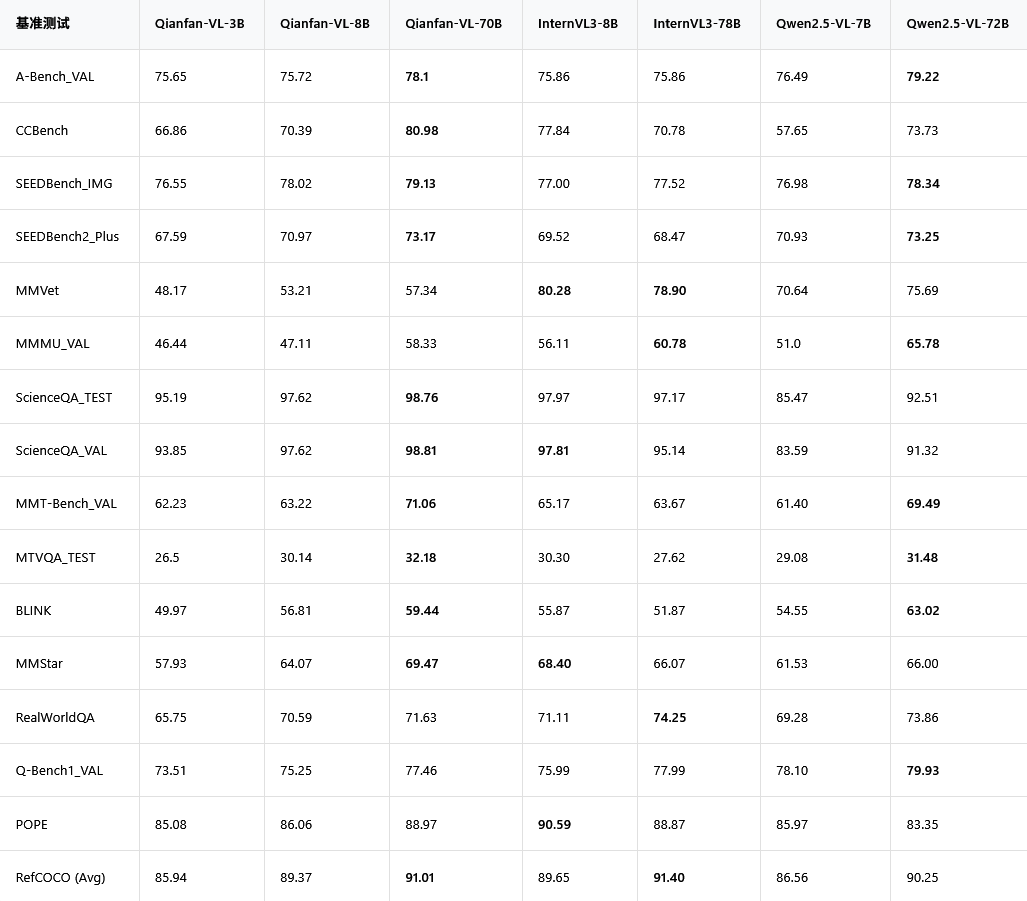 尤其是在中文多模态基准测试CCBench中,Qianfan-VL-70B拿到了80.98分,而同级别的对手只有70分出头。这说明它在理解中文语境下的图文内容时,优势非常明显。