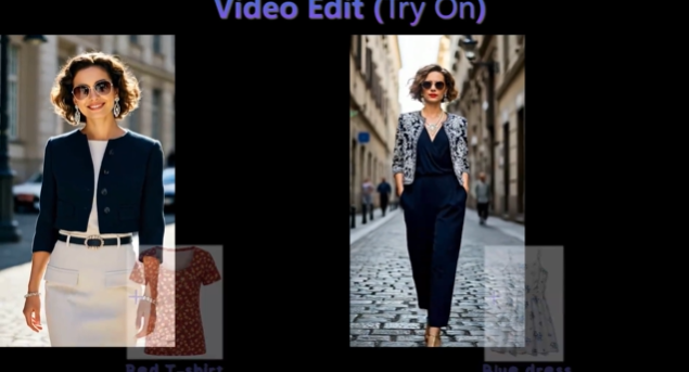 它可以稳定抖动的视频,可以控制相机路径实现局部超分辨率,甚至可以进行创意性的视频内容编辑,比如添加或移除物体、替换视频主体、实现虚拟试穿效果等等。