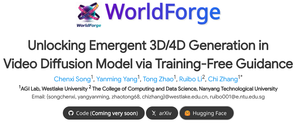 西湖大学AGI实验室和南洋理工大学的研究人员联手,提出了一个名为WorldForge的全新框架。不需要训练模型,即插即用将现有视频扩散模型秒变3D世界模型。